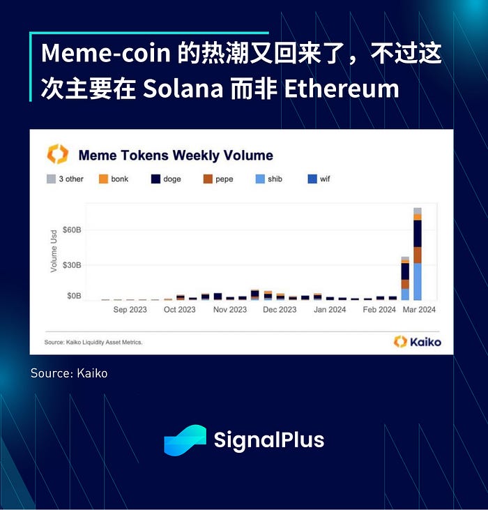 回顧2017 年的ICO 熱潮,當時受益最大的是ETH,因為交易員(以及degens)需要購買並鎖定ETH,以鎖定折扣代幣的分配,鎖定和等待的部分創造了對ETH 的單向需求, 導致ETH 大幅上漲,在ICO 熱潮中表現優於大多數其他主要代幣。 然而,在當前週期,接力棒已經傳給了 Solana,大部分 meme-coins、預售和其他「degen 活動」都在此進行。 此外,目前的鎖定期和等待期也短得多,導致更快的周期更迭和更激烈的投機炒作,這使得 Solana 在當前的 meme-coin 狂熱中表現優於其他主要代幣。