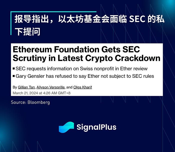 此外,美國SEC 可能回歸舊有模式,Forbes 報導稱,以太坊基金會正面臨一個未具名「國家當局」的保密查詢,開發人員在GitHub 提交的commit 中表示,「此提交刪除了頁腳的 一部分,因為我們收到了國家當局的自願查詢,且被要求保密”,且自網站刪除了一段基金會從未被全球任何國家機構以保密方式聯繫過的聲明。