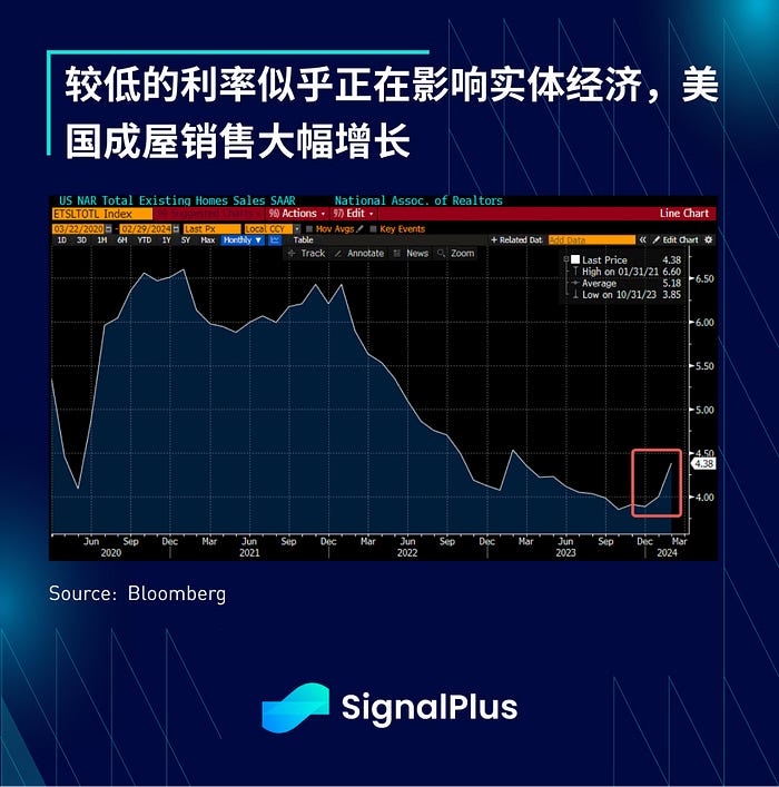 回到美國,股市一如既往升至新高(感謝美聯儲!)。 經濟數據顯示,較低的抵押貸款利率似乎正順利影響實體經濟,成屋銷售大幅增長,除了整體數據表現強勁外,住房供應和價格中位數(環比增長0.5% )也顯示出不錯的增長, 回到了疫情前的水平,預計聯準會的降息將在下半年進一步提振需求。