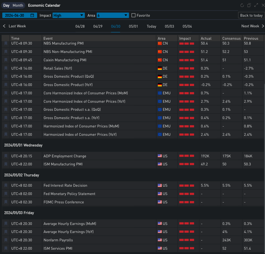 昨天(1 MAY)美國 4 月 ADP 就業人數增加 19.2 萬人,超出預期的 17.5 萬,為 2023 年 7 月以來最大增幅。 凌晨的FOMC 會議上聯準會如預期宣布維持利率不變,會上承認了近期通膨進展不順,但鮑威爾最終做出了鴿派表態,稱下次會議不太可能加息,目前推遲降息也是合適的 。